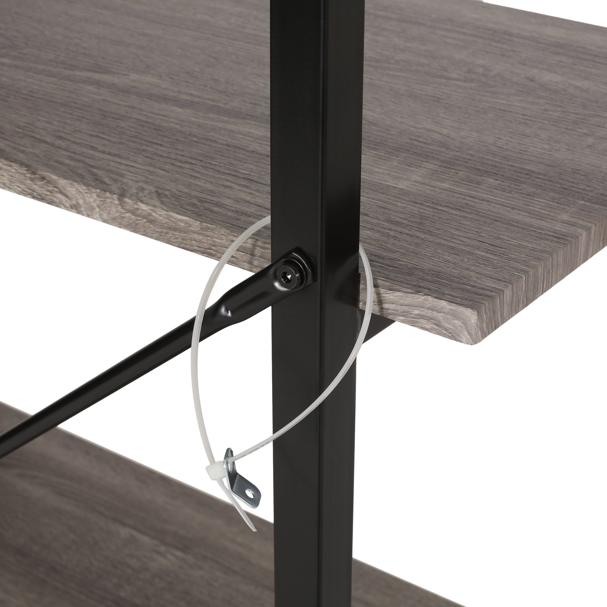 MODERN INDUSTRIAL: Our bookcase incorporates a powder-coated base with a beautiful wood look to create an understated modern industrial atmosphere. With beautiful turned accents, this bookcase offers a raw yet refined atmosphere to your home.